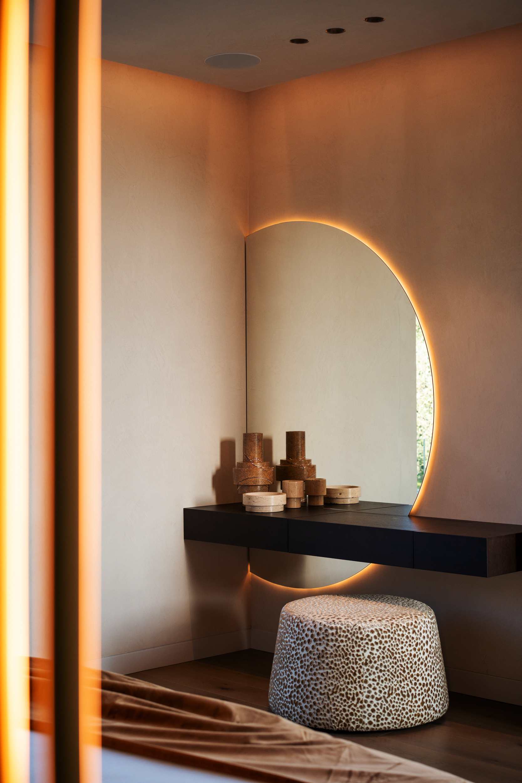 La tecnología juega un papel fundamental en esta villa, y desde Illusion hemos sido responsables de diseñar e implementar un sistema de domótica que permite un control intuitivo de todas las instalaciones. Mediante el avanzado sistema de Lutron, los residentes pueden gestionar con facilidad la iluminación interior y exterior, el sonido en los espacios y la temperatura del ambiente, así como el manejo de las cortinas y estores. Cada botonera Palladiom ha sido cuidadosamente personalizada, adaptándose a las necesidades específicas de cada espacio y a las preferencias exclusivas de los clientes, para conseguir una experiencia de uso a medida. En esta ocasión se ha empleado el acabado en negro para aportar carácter y elegancia.